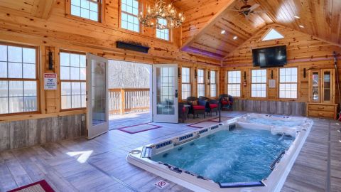 We welcome you to come check out our luxury 5 bedroom 4.5 bathroom lodge tucked away in the woods of Hocking hills. Plenty of space ( 10,300 sq ft ) for your extended family or group to spread out. Several King beds with privacy, 1 bedroom with Queen & 2 Full size on bunks, lower level has 2 bedrooms with 2 Queen beds & Queen size futon in each. This is a must see - Please see for yourself on our Virtual Tour !!
