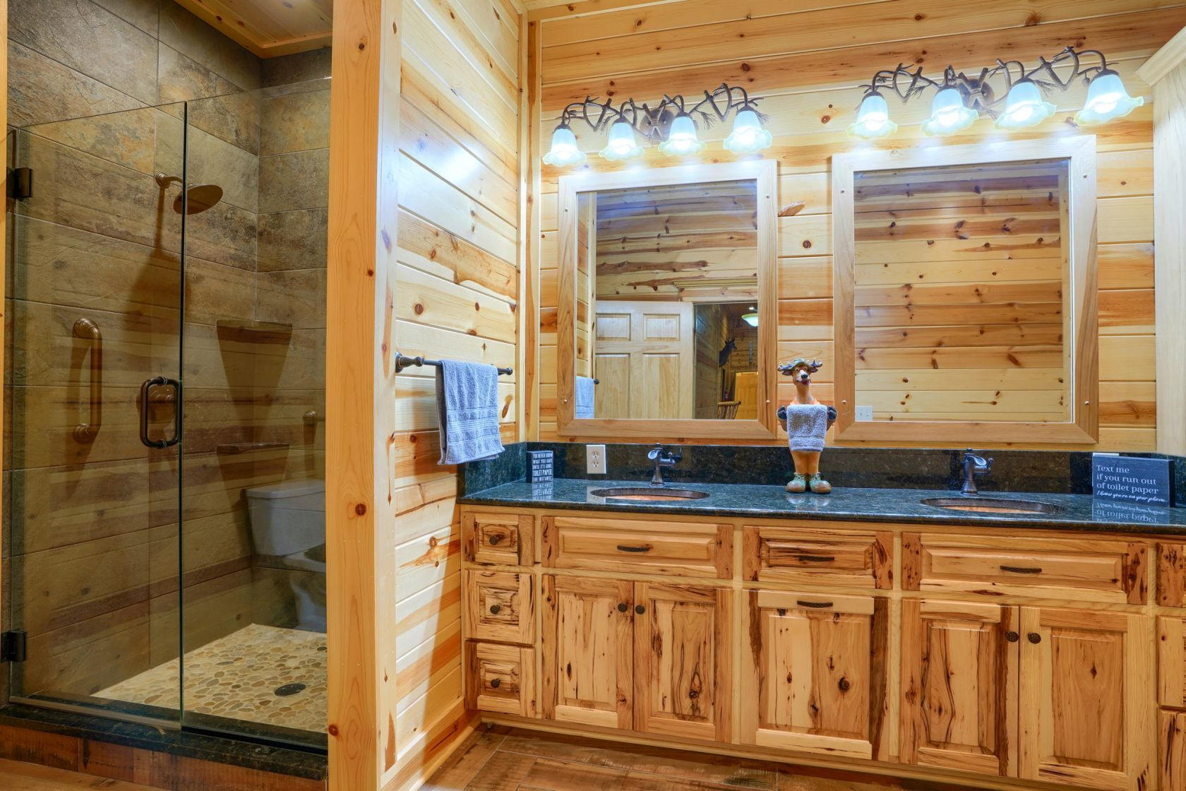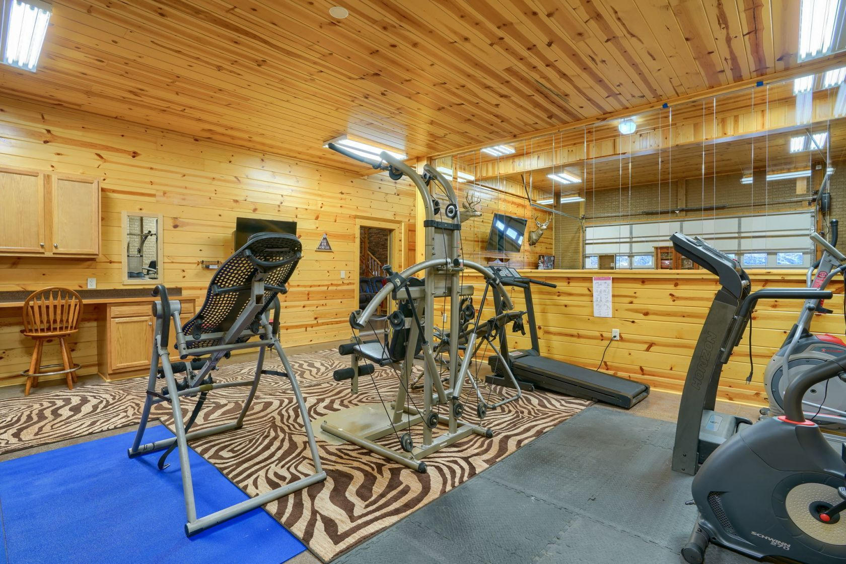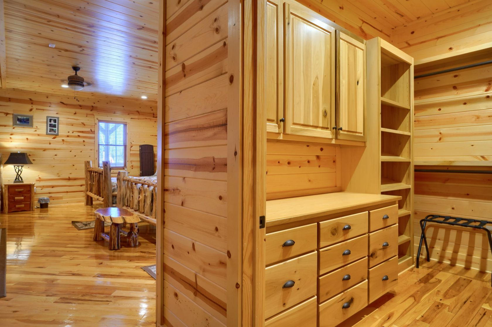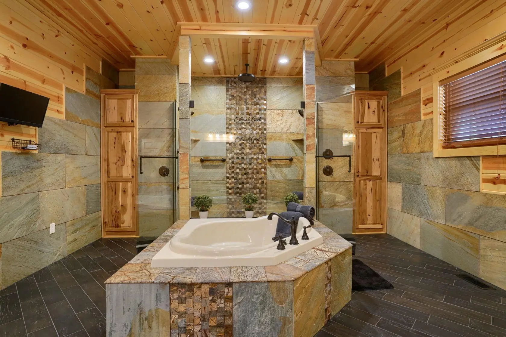 Several King beds with privacy,1 bedroom with Queen & 2 Full size on bunks, lower level has 2 bedrooms with 2 Queen beds & Queen size futon in each. Extra large custom walk in showers. Large soaking Tub, Massive parking lot for parking , WiFi, satellite TV, 2 outside fire pits with chairs, gas grill and much more - this is a MUST see. Please see for yourself on our Virtual Tour!