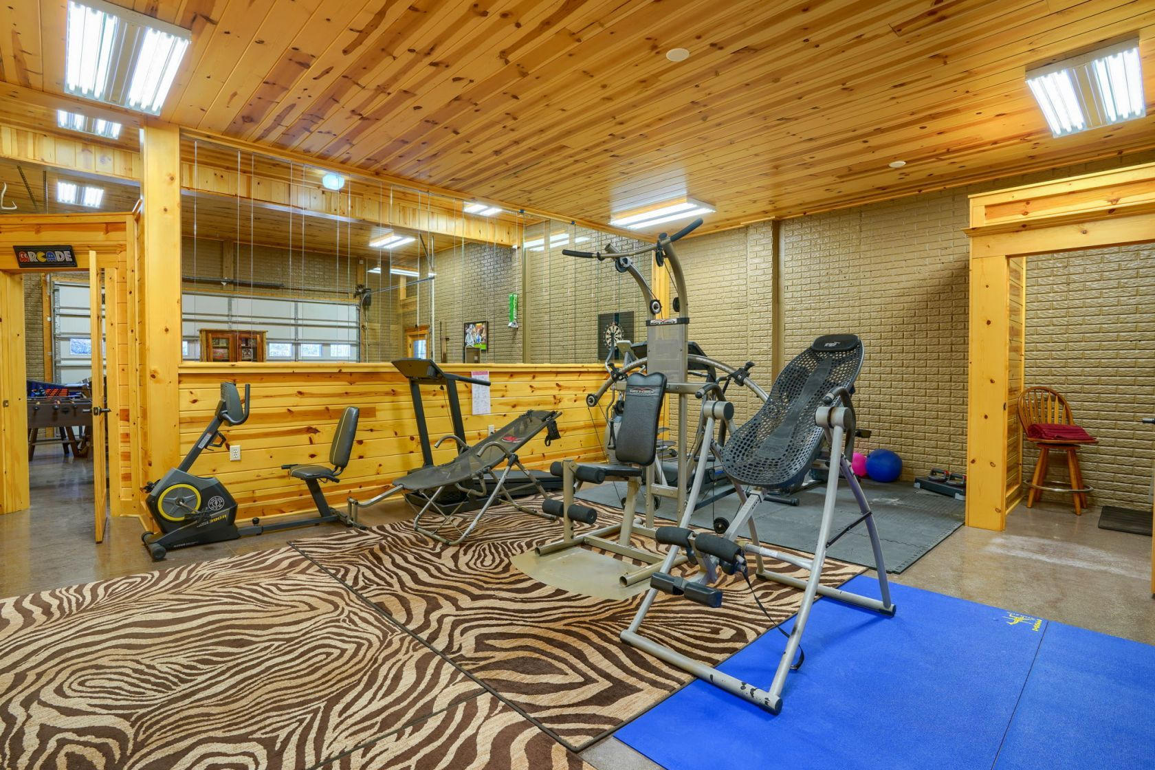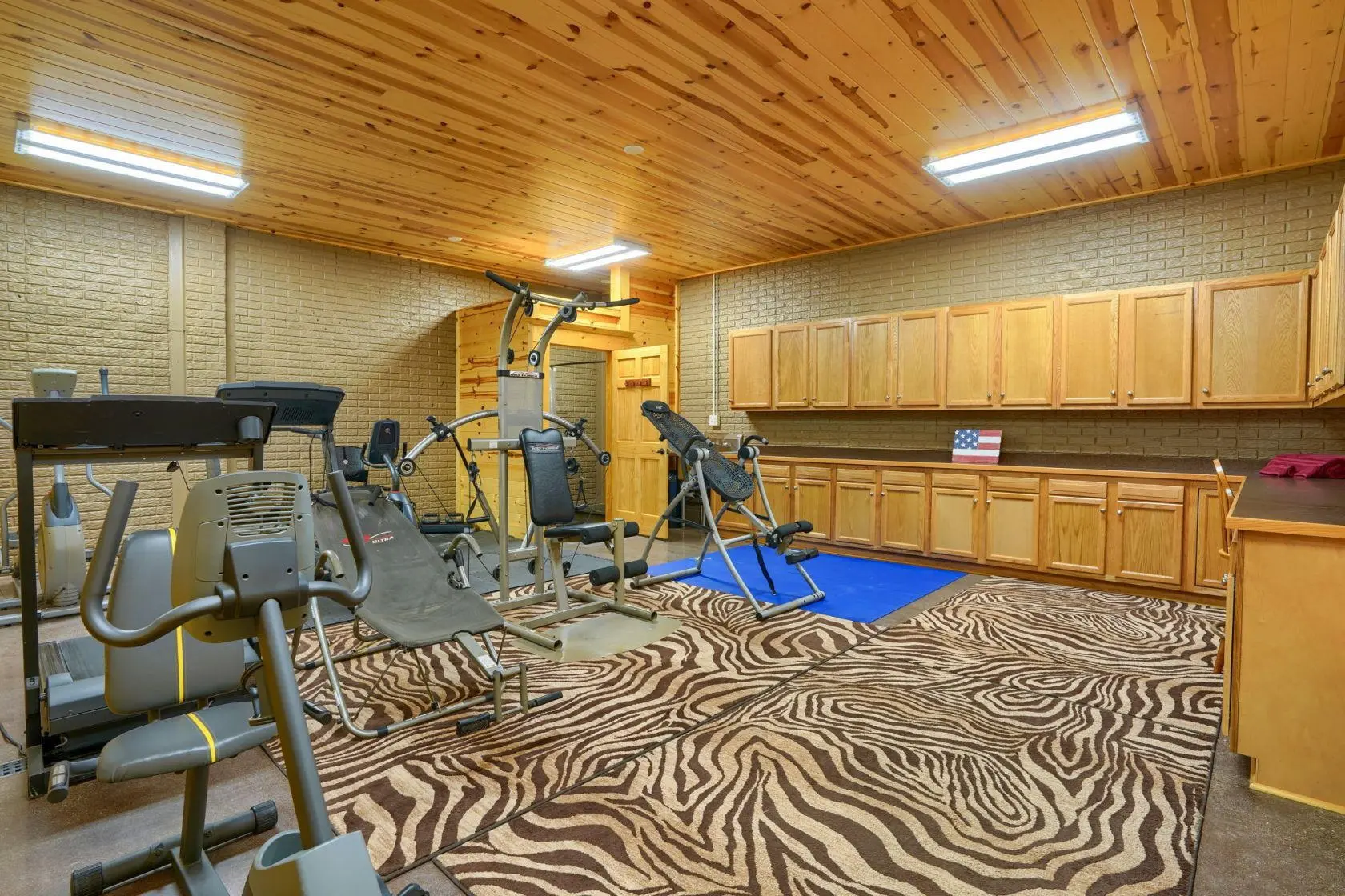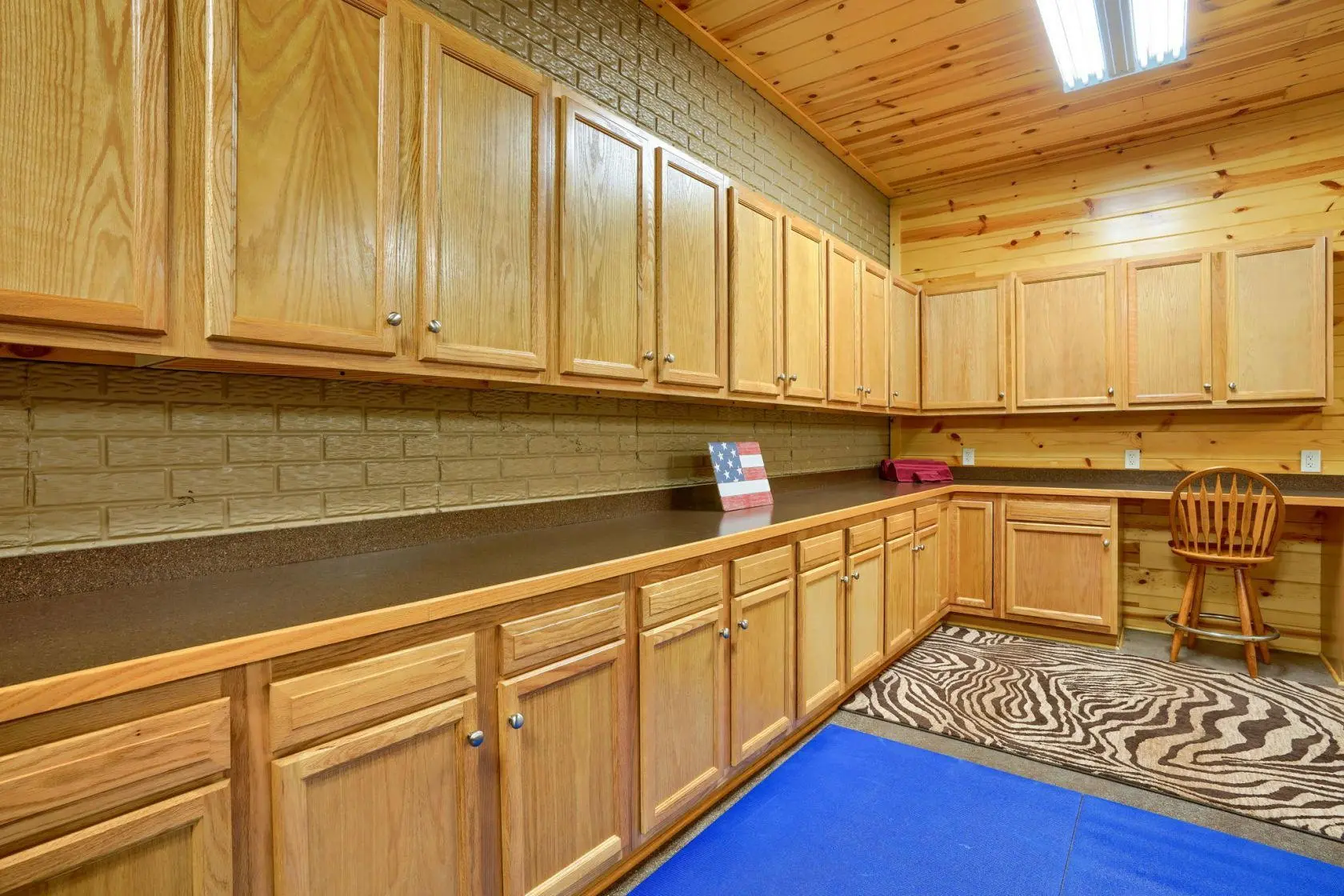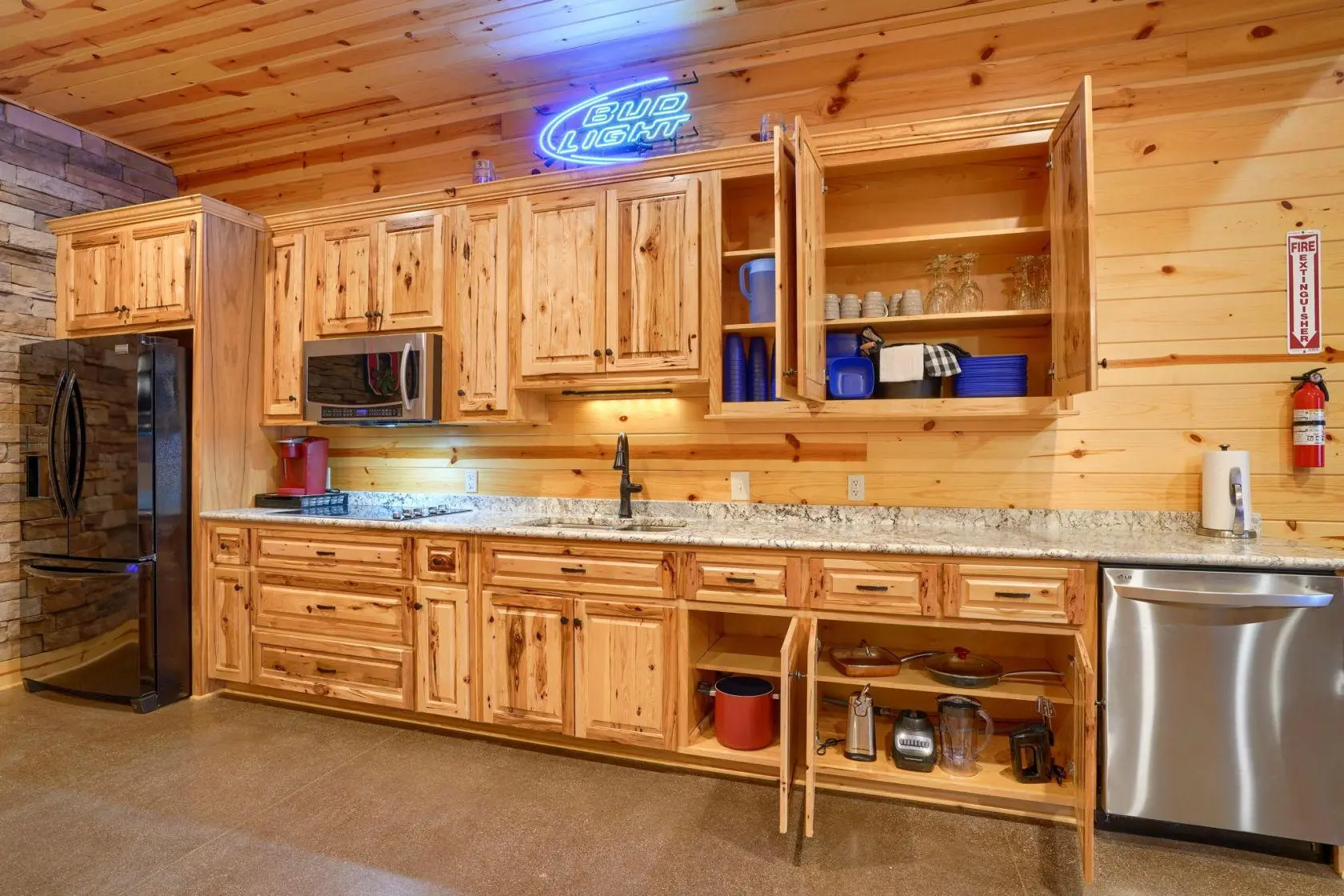 Several King beds with privacy,1 bedroom with Queen & 2 Full size on bunks, lower level has 2 bedrooms with 2 Queen beds & Queen size futon in each. Extra large custom walk in showers. Large soaking Tub, Massive parking lot for parking , WiFi, satellite TV, 2 outside fire pits with chairs, gas grill and much more - this is a MUST see. Please see for yourself on our Virtual Tour!