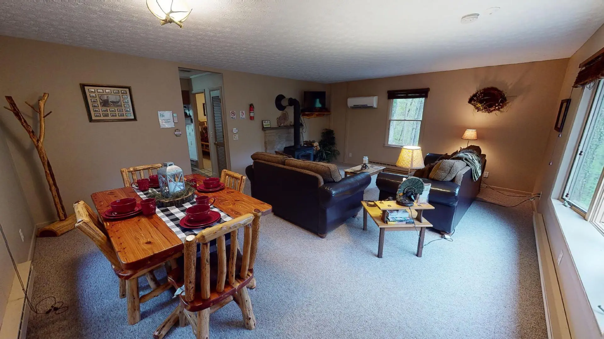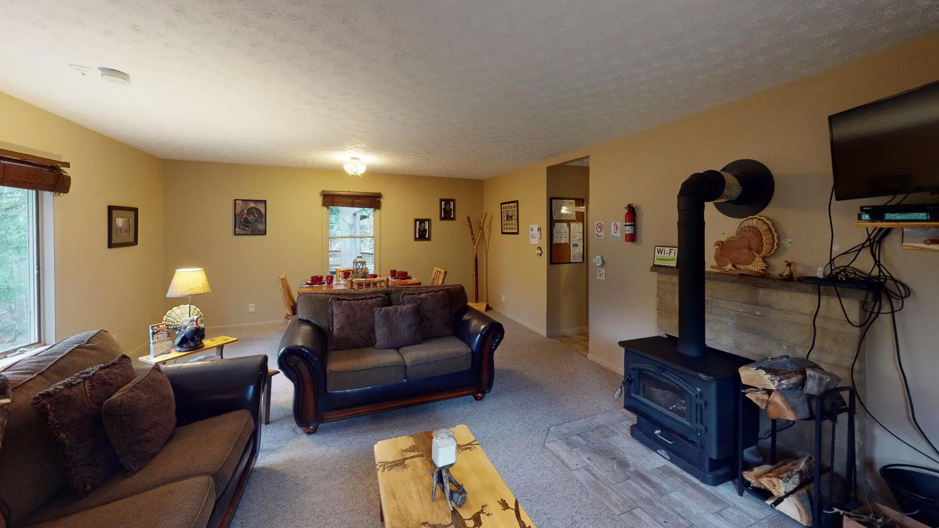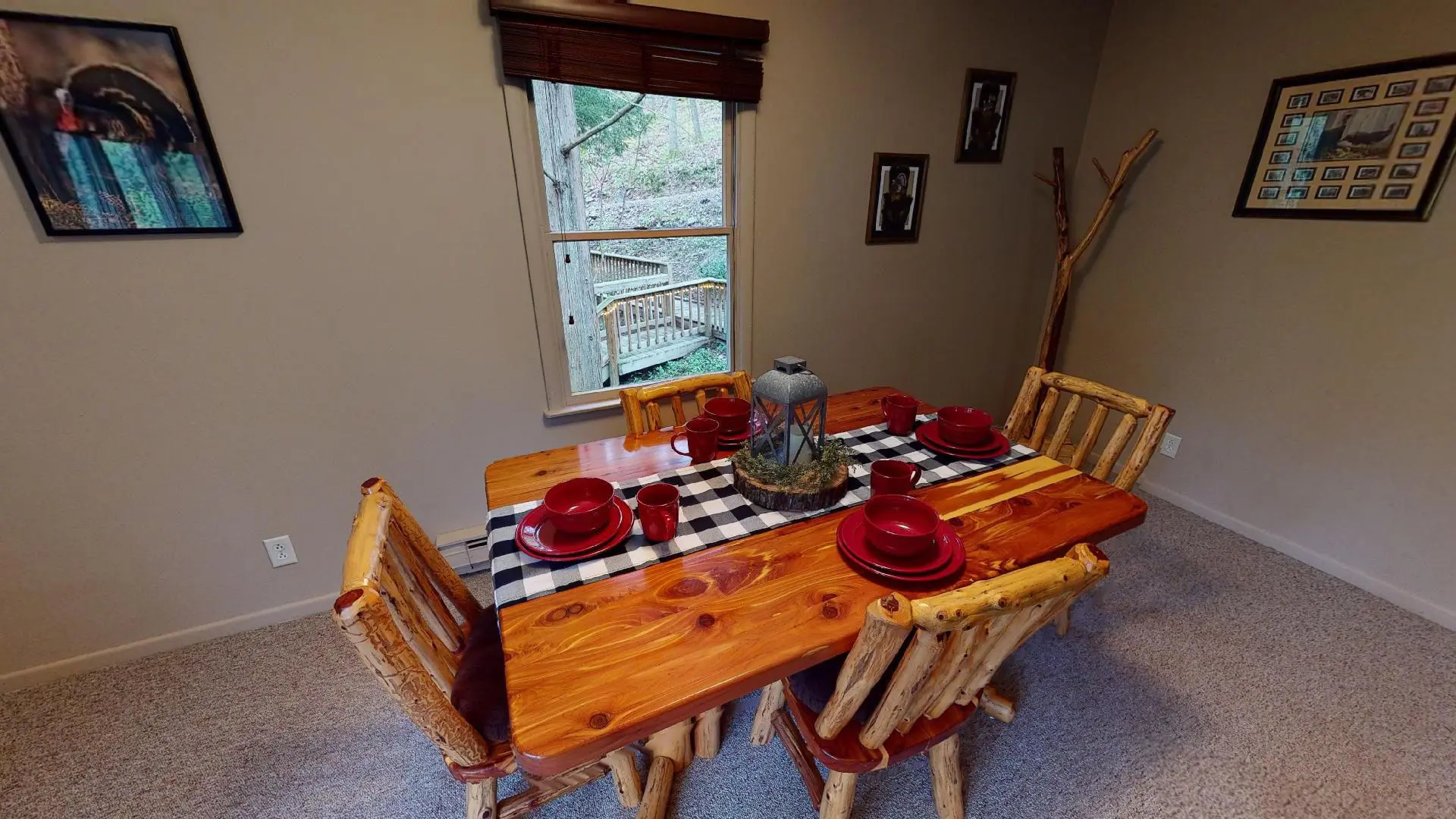 This lodge has 1 bedroom, 1 full bath, full kitchen, Heat / AC unit, flat screen TV, satellite, DVD player, WiFi, Hot Tub, gas grill, and outdoor furniture for relaxing. Come take in the view high in the tree tops. See the wildlife as you relax in the hot tub. Rates based on 2 person occupancy.